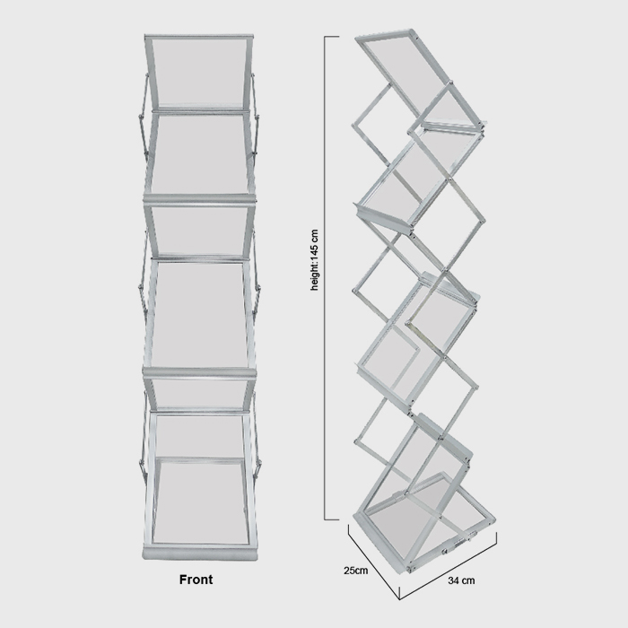 Our exhibition brochure stand features 6 clear tiers, designed to display A4 brochures in portrait format. Each holder has a 20mm depth, allowing you to stock plenty of brochures in one compact unit. Crafted with sturdy materials, the stand ensures your marketing materials are presented professionally and remain easily accessible throughout your event.